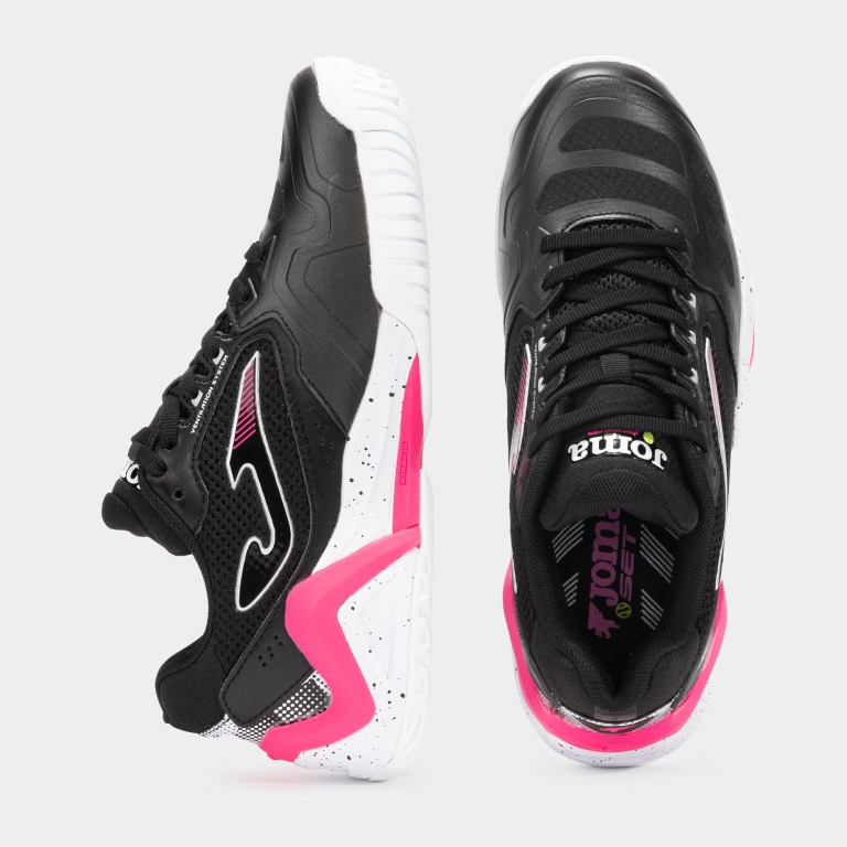 נעלי JOMA SET 2501 פותחו במיוחד עבור שחקניות טניס המעוניינות לשפר את רמת המשחק שלהן. דגם זה משלב עיצוב מודרני בצבע שחור עם טכנולוגיות מתקדמות ליציבות, תמיכה וביצועים אופטימליים- ומתאים במיוחד למשחקים בעוצמה בינונית.